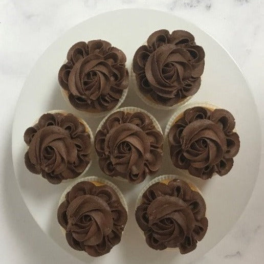 A moist vanilla cupcake perfectly paired with rich, creamy chocolate buttercream frosting. A delightful duo that's sure to get your taste buds dancing.