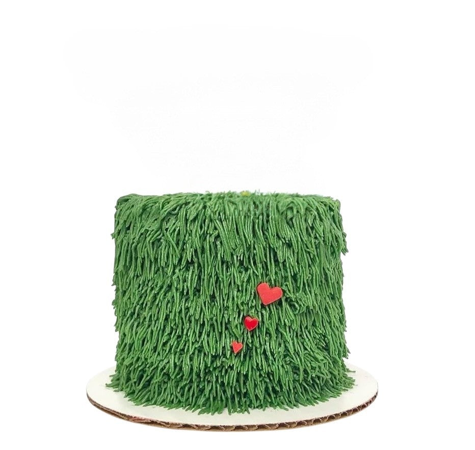 Celebrate the season with a timeless favourite featuring three layers of your choice of cake, frosted with creamy vanilla buttercream dyed the perfect Grinch green and textured to mimic the iconic shaggy look of everyone's favourite holiday mischief-maker. To complete the look, it is adorned with the three hearts symbolizing his growing heart. This cake is sure to steal hearts and spread cheer!